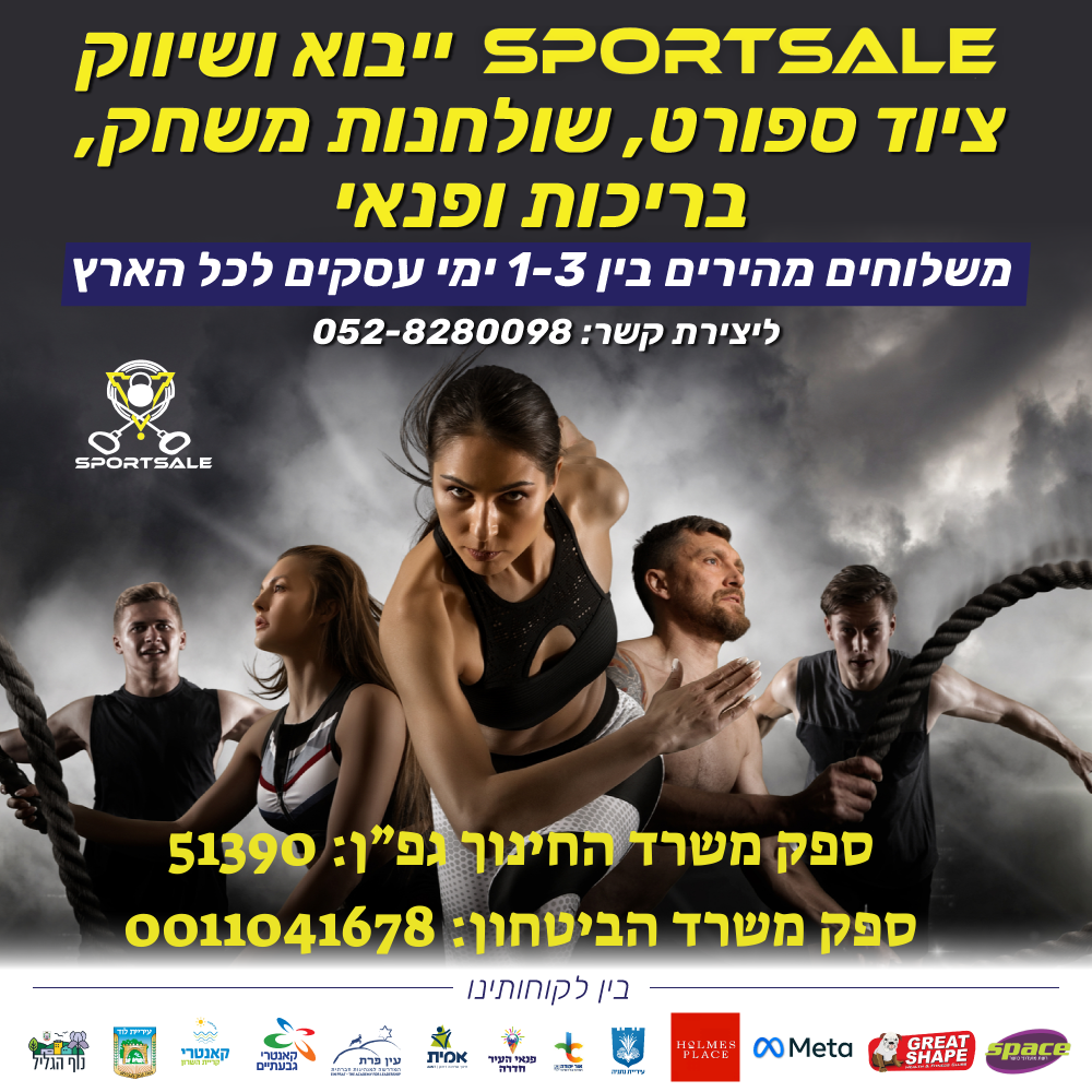 SPORTSALE-מכשירי כושר, ציוד ספורט, שולחנות משחק ופנאי. המחסן הראשי בקניון פרנדלי בגבעתיים- בורוכוב 54 גבעתיים. משלוח מהיר בין 1-3 ימי עסקים לכל הארץ